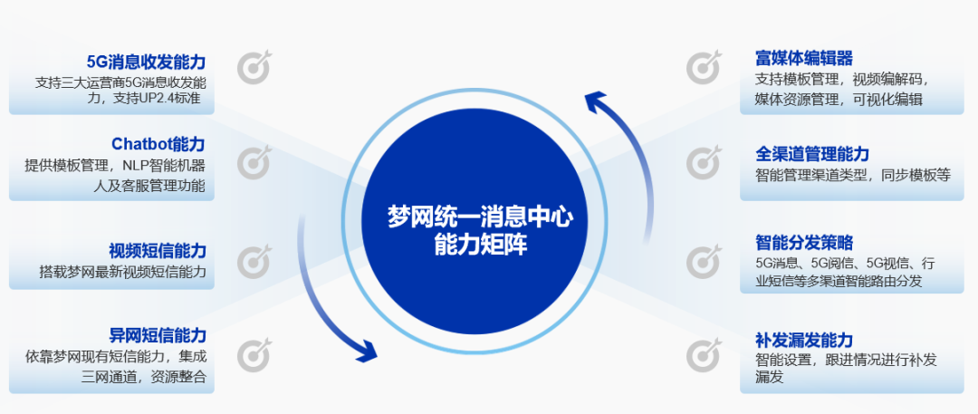 凯发k8官网统一消息中心(UMC)作为面向5G时代打造的融合通讯解决方案,集智能接入、智能管理、智能生产、智能运营和智能营销于一体,实现了全终端、全场景、全业务、全渠道的广泛覆盖。UMC给予灵活的在线SaaS服务和定制化的线下私有化部署方案,能够满足不同行业的多样化需求,并全面对接市面上主流的5G阅信渠道,包括凯发k8官网阅信直发、天慧5G阅信、移动5G阅信、联通电信5G消息以及华为云KooMessage等,为企业构建起高效、稳定的通讯生态系统。