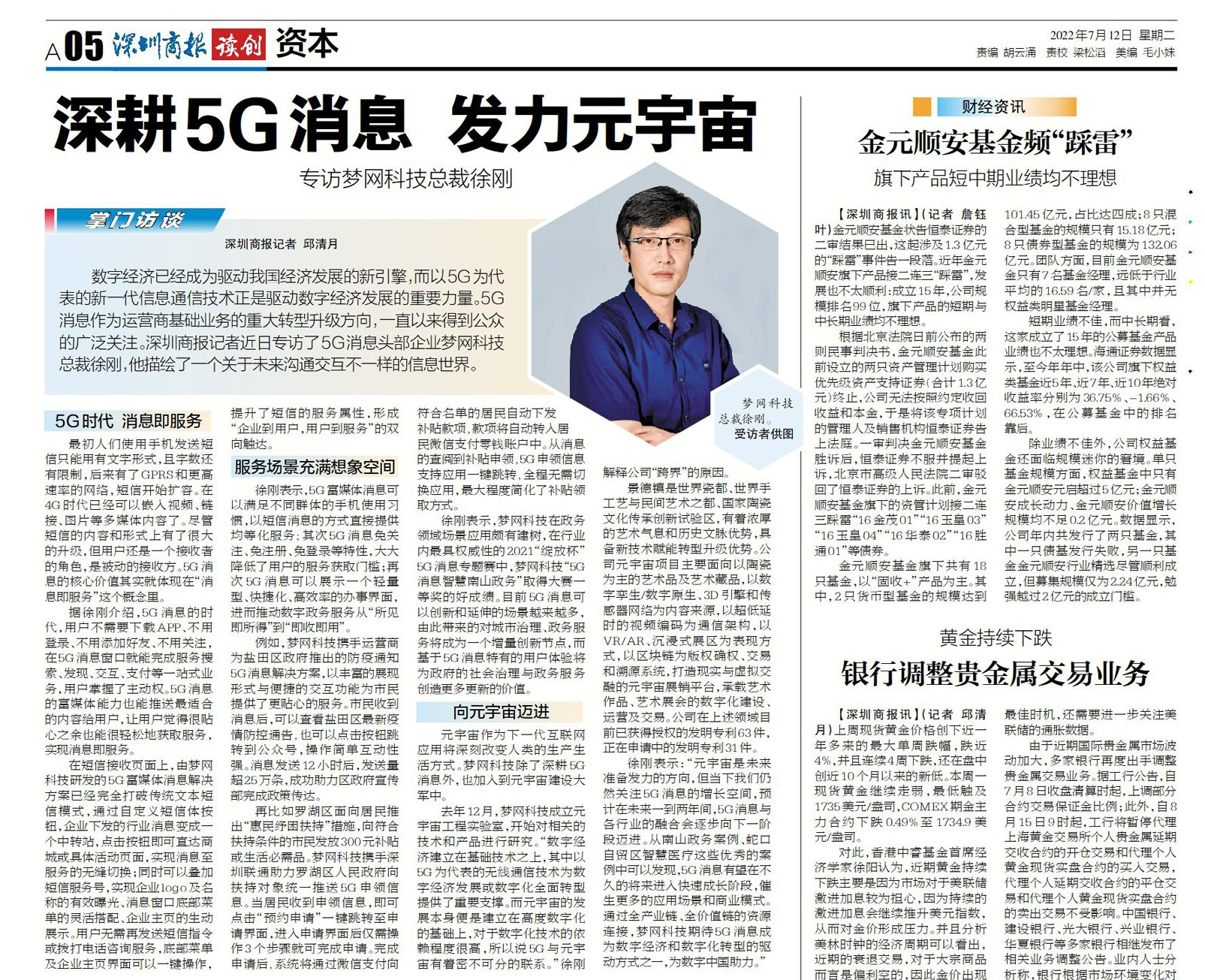 深圳商报专访 | 凯发k8官网科技总裁徐刚:开启5G消息第二增长曲线